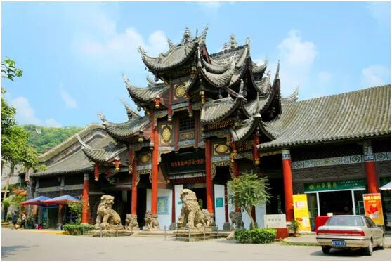 西秦会馆是清初到自贡地区经营盐业获利丰厚的陕西和山西籍盐商于乾隆元年(1736年)合资兴建的同乡会馆。该建筑设计精巧,整个空间布局严谨方正,主要建筑有武圣宫大门、献技诸楼、大丈夫抱厅、参天阁、中殿、正殿、金镛阁及贲鼓阁等。西秦会馆还保存了大量精美的木雕石刻,既是中国古建筑宝库中的精品,也是盐业发展史上的珍贵文物。1988年,西秦会馆被国务院颁布为全国重点文物保护单位。